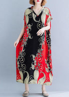 Questo abito lungo con stampa barocca su base rossa e nera è perfetto per chi ama il comfort senza rinunciare alla personalità.