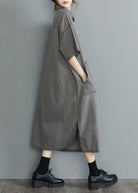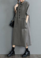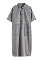 Questo abito chemisier in denim grigio è la combinazione ideale tra praticità e stile minimalista.