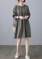 Questo abito corto a quadretti unisce comodità e stile con un tocco giocoso e femminile.