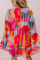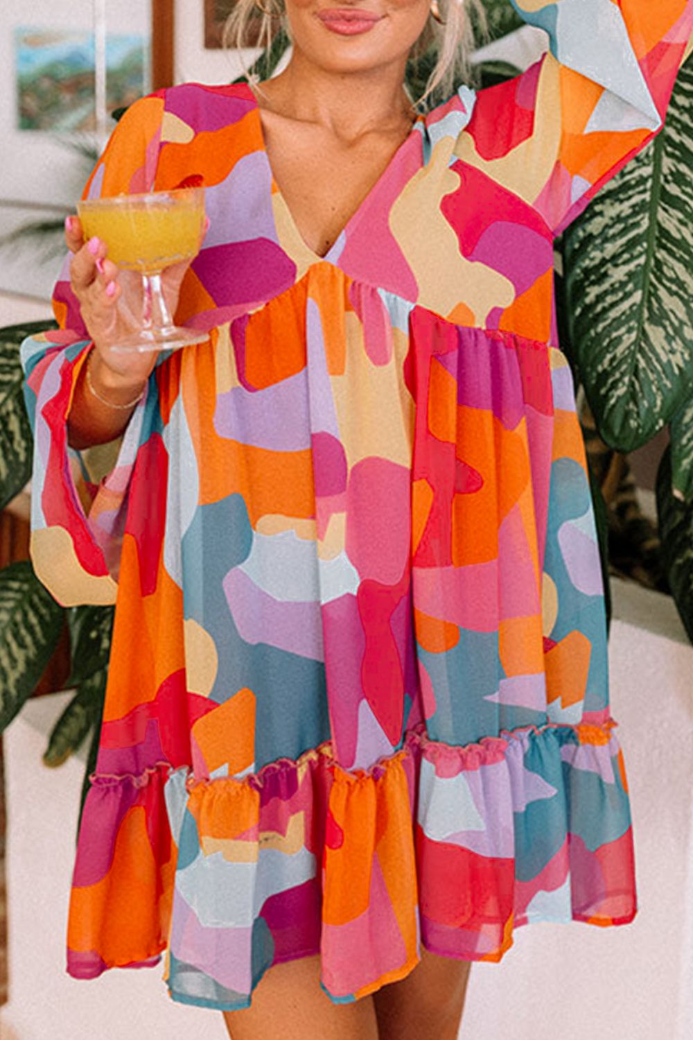 Questo vestito corto con maniche lunghe e stampa multicolor è perfetto per aggiungere energia e stile al tuo look.