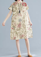 Questo vestito corto con stampa floreale su base chiara è perfetto per chi ama uno stile naturale e senza tempo.