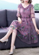 • Tulle Ricamato: Motivo floreale in verde, lilla e azzurro su fondo viola cipria