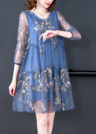 Questo abito leggero con ricami floreali è perfetto per cerimonie, serate importanti o feste raffinate.