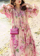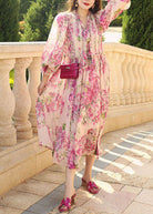 Questo abito midi con stampa floreale rosa è la quintessenza della femminilità e della freschezza.