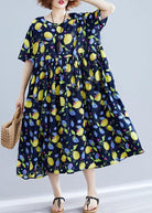 Questo abito midi oversize con stampa di limoni e frutti colorati è perfetto per portare allegria e freschezza nel tuo guardaroba.