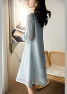 Questo vestito in chiffon con motivo a righe è elegante e arioso, perfetto per look femminili e sofisticati.