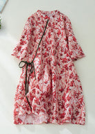 Questo vestito in lino con stampa ramificata rossa e dettaglio a portafoglio laterale è perfetto per uno stile naturale ed elegante.