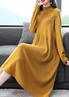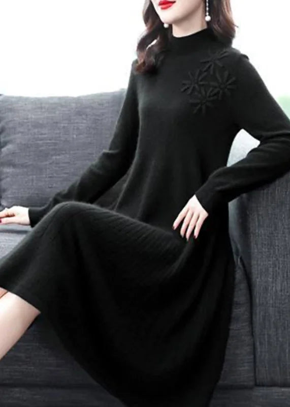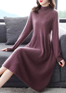 Questo abito in maglia a maniche lunghe è la scelta ideale per le giornate fredde, senza rinunciare all’eleganza.
