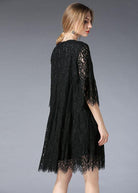 Questo vestito in pizzo nero è un classico intramontabile che unisce fascino e femminilità.