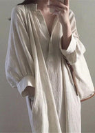 Questo abito in lino dal taglio morbido è la quintessenza della semplicità elegante.