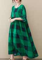 Questo abito maxi a quadri verdi e blu è perfetto per un look rilassato, naturale e dal tocco vintage.