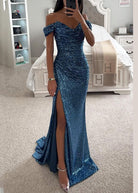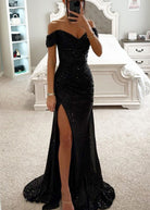 • Dettagli Glamour: Spacco laterale alto e scollo off-shoulder per un look da vera star