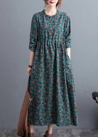 Questo vestito lungo con stampa floreale su base verde è perfetto per uno stile casual e femminile.