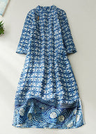 Questo vestito in stile tunica con stampa geometrica blu e maniche lunghe è perfetto per chi ama comfort e originalità.