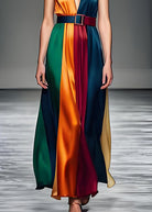 Le bande verticali multicolore in tessuto satinato creano un effetto slanciante e glamour.