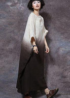 Questo vestito lungo in cotone e lino con sfumatura naturale è un capo unico per chi ama la semplicità con un tocco artistico.