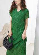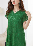 Questo abito lungo in pizzo verde è perfetto per esprimere eleganza con un tocco vivace.