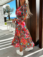 Abito Midi a Stampa Geometrica Multicolor | Scollo Incrociato | Chic da Resort