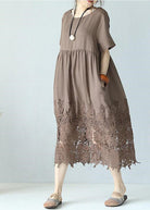 Questo abito midi in cotone presenta un raffinato inserto in pizzo floreale che aggiunge un tocco romantico e femminile.