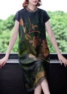 Questo abito midi in seta con stampa floreale orientale è un connubio perfetto tra tradizione e stile contemporaneo.