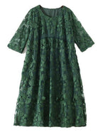 Questo vestito midi in pizzo floreale verde è perfetto per un look femminile, delicato e leggero.