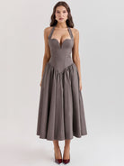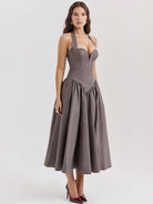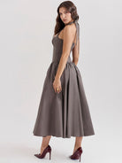 Abito Midi in Taffetà Grigio con Scollo a Cuore | Charcoal Grace | Vintage Glam