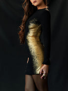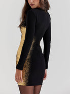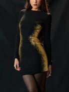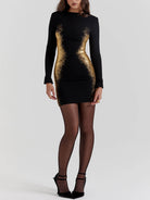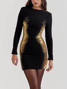 Abito Mini Nero con Dettaglio Oro Metallizzato | Maniche Lunghe | Effetto Sagomato Glam