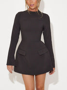 Abito Mini Nero Strutturato | Colletto Geometrico & Maniche Lunghe | Power Look Contemporaneo