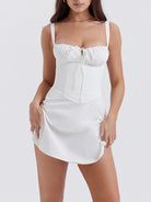 Abito Mini Satinato con Scollo a Cuore | Dettagli a Balza & Spalline Sottili | Effetto Lingerie Chic