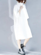 Questo vestito bianco con collo alto e maniche ampie è perfetto per un look pulito, moderno e senza tempo.