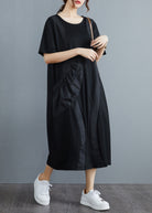 Questo vestito nero dallo stile casual-chic con dettagli a contrasto e tasca arricciata è perfetto per chi ama distinguersi con discrezione.