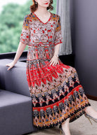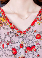 • Stampa Ornamentale: Motivi floreali e geometrici in rosso, nero, oro e beige