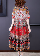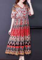 Questo vestito midi con stampa ornamentale e colori intensi è un’esplosione di eleganza e vivacità.