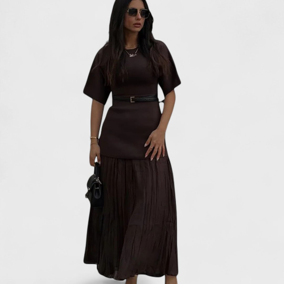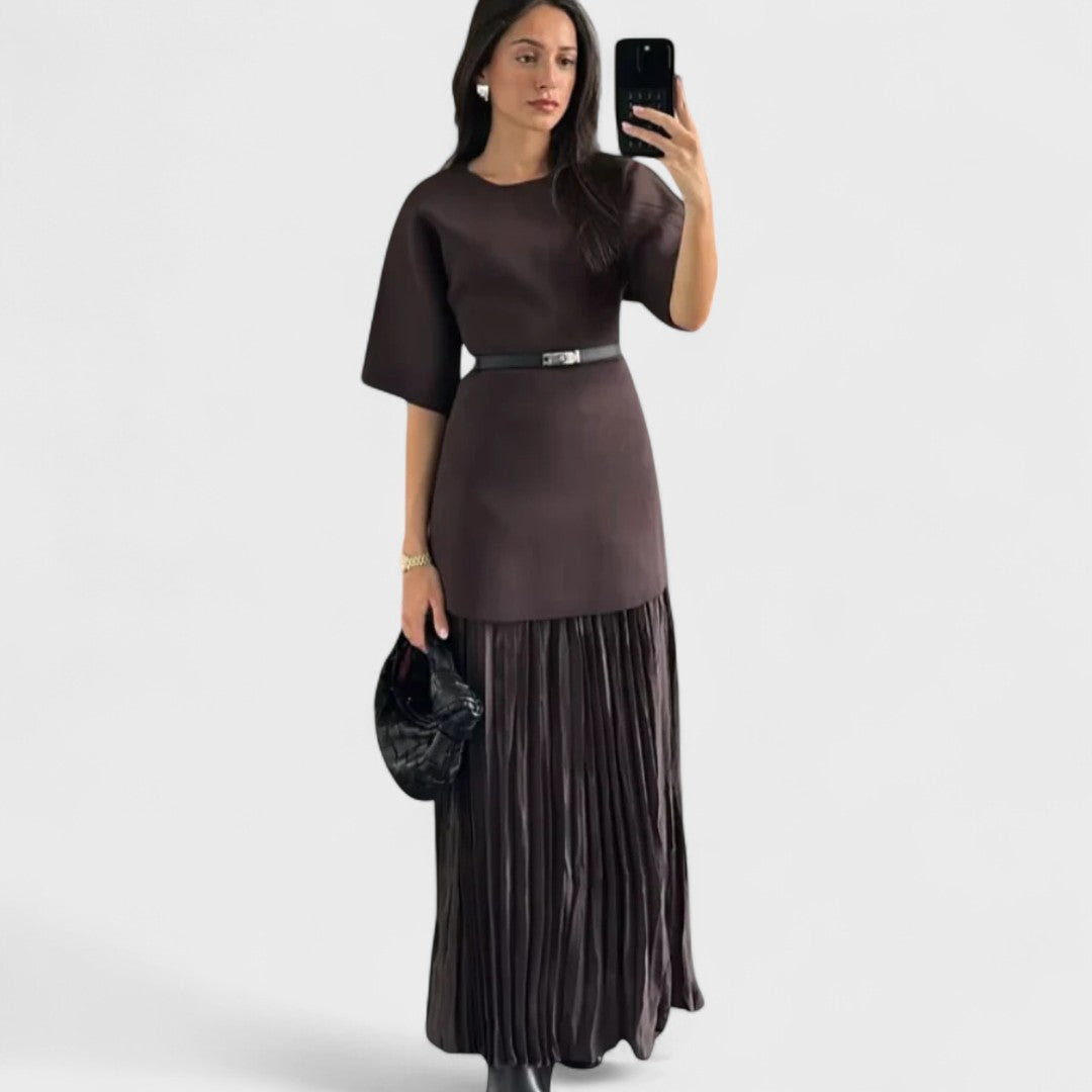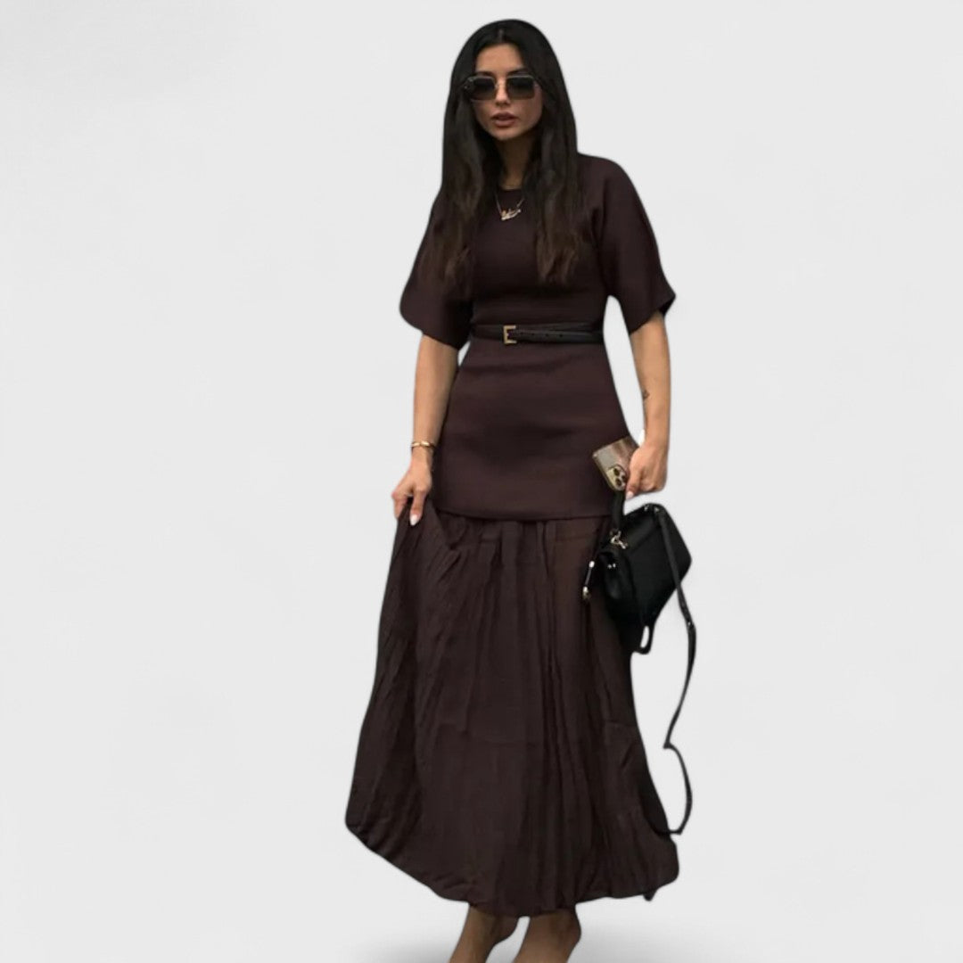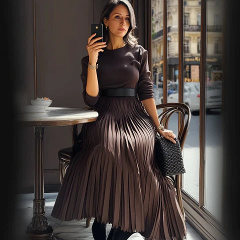• Design raffinato: Gonna plissettata a pieghe ampie con top liscio a maniche lunghe