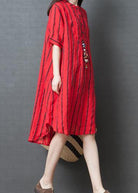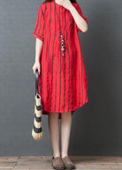 Questo abito a righe verticali rosse e nere è perfetto per un look creativo e rilassato.