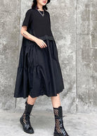 Questo vestito midi total black con silhouette a balze unisce anima street e minimalismo contemporaneo.