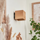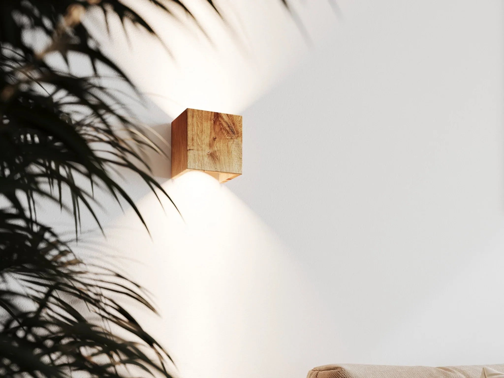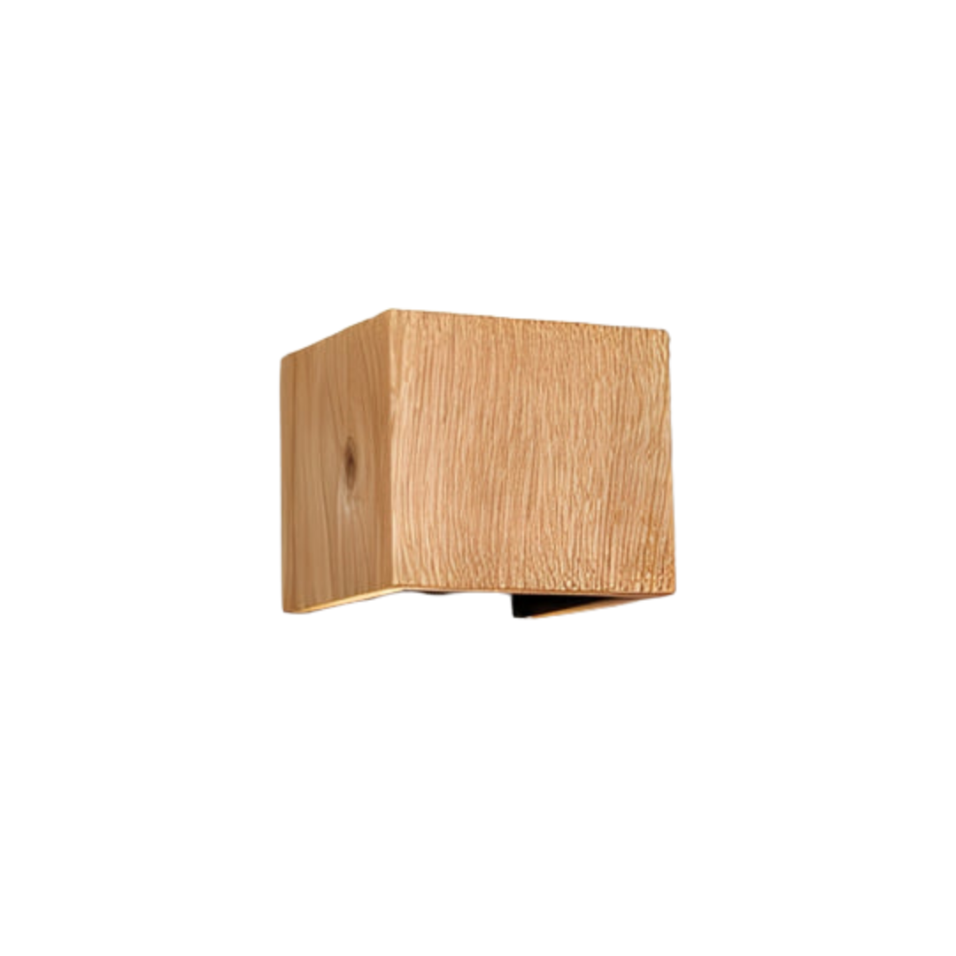 Questa lampada da parete cubica con effetto legno illumina verso l’alto e verso il basso creando un elegante gioco di luci.