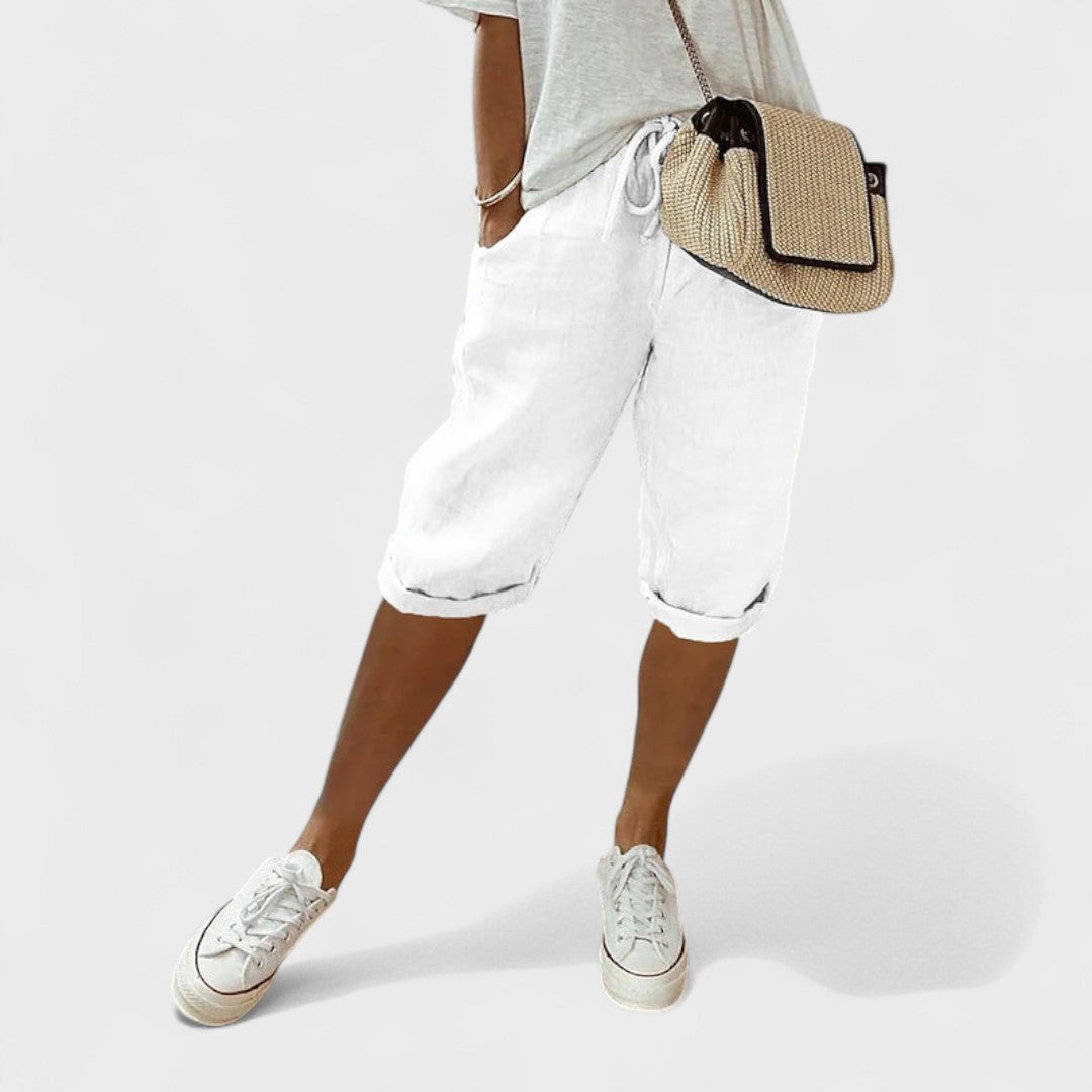 Il design con risvolto e coulisse in vita aggiunge un tocco casual ma curato.