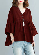 Le maniche a balze e lo scollo a V donano un tocco femminile ed elegante, mentre il tessuto morbido garantisce comfort tutto il giorno.