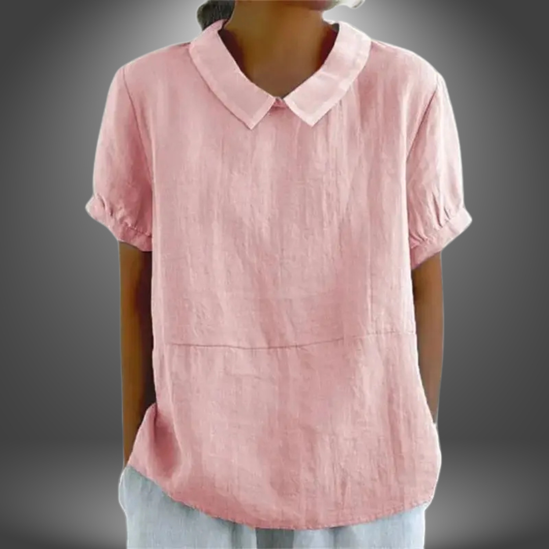 Blusa in Lino con Colletto Tondo