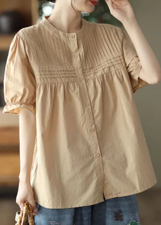 Questa camicetta in cotone con pieghe sul petto e maniche a palloncino offre un perfetto mix tra semplicità e dettagli delicati.