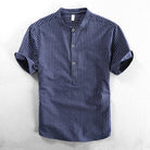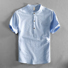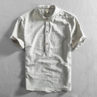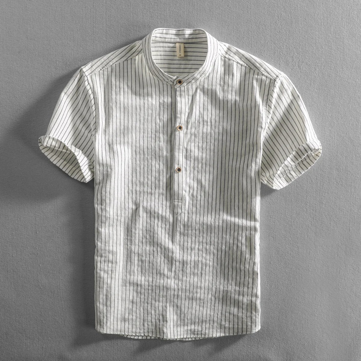 Questa camicia a maniche corte con colletto alla coreana è perfetta per mantenere uno stile fresco e moderno.