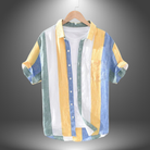 Questa camicia a righe multicolore è la scelta ideale per un outfit casual ma curato.