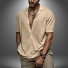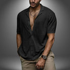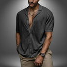 Questa camicia a maniche corte in tessuto strutturato è l’ideale per un look fresco e rilassato.