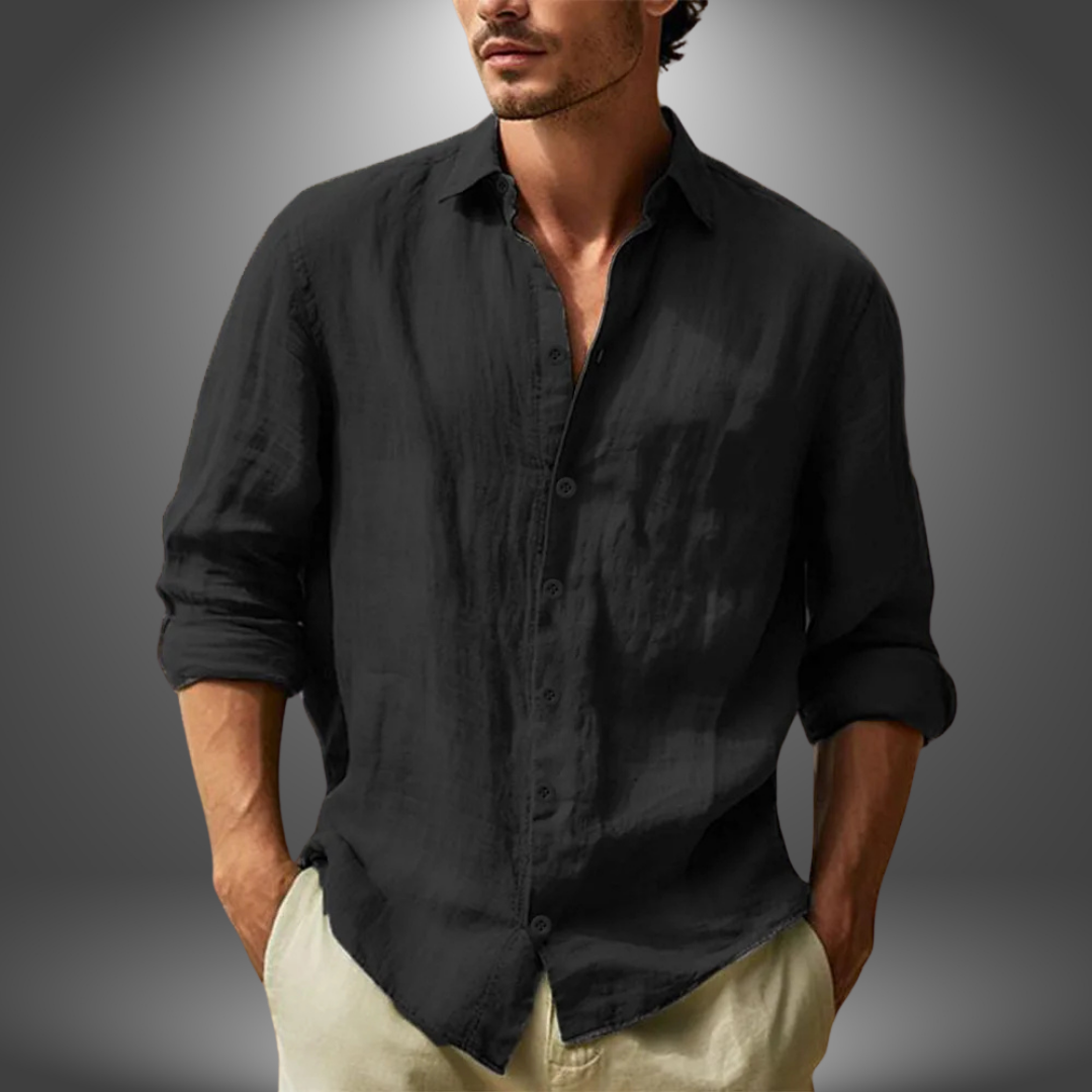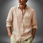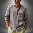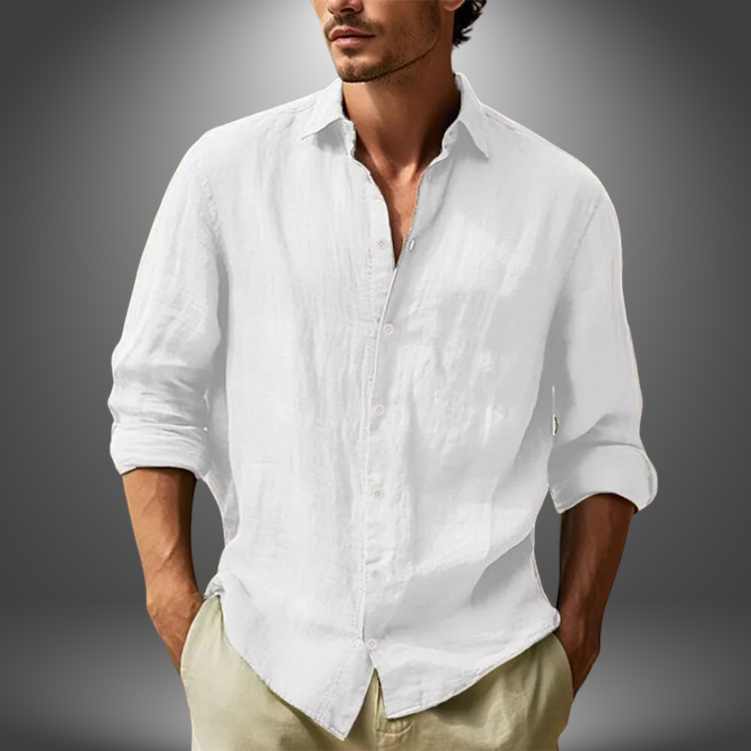 Questa camicia in lino dal taglio morbido è l’ideale per un’eleganza casual e naturale.