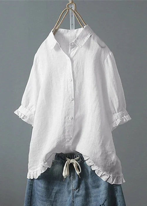 Questa camicia leggera con bordini arricciati è il capo ideale per uno stile fresco e naturale.