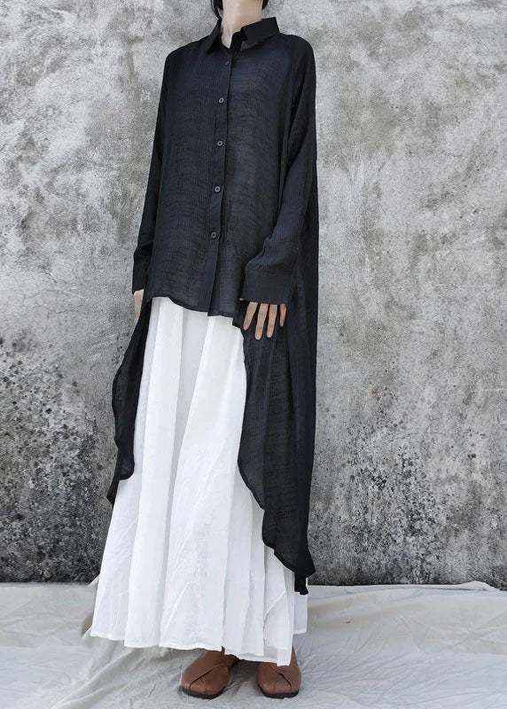 Questa camicia lunga asimmetrica è perfetta per creare outfit eleganti ma rilassati.