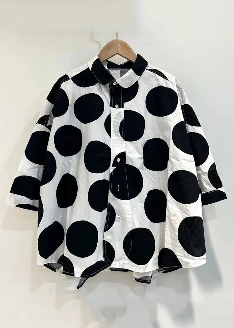 Questa camicia over con maxi pois è l’ideale per chi ama distinguersi con stile e carattere.