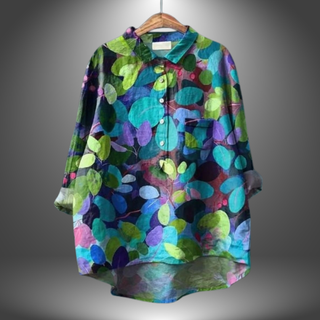 Questa camicia oversize con stampa foglie è perfetta per chi ama osare con stile e leggerezza.