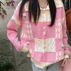 Cardigan Donna | Motivo a Quadri & Ricami | Stile Romantico e Morbido